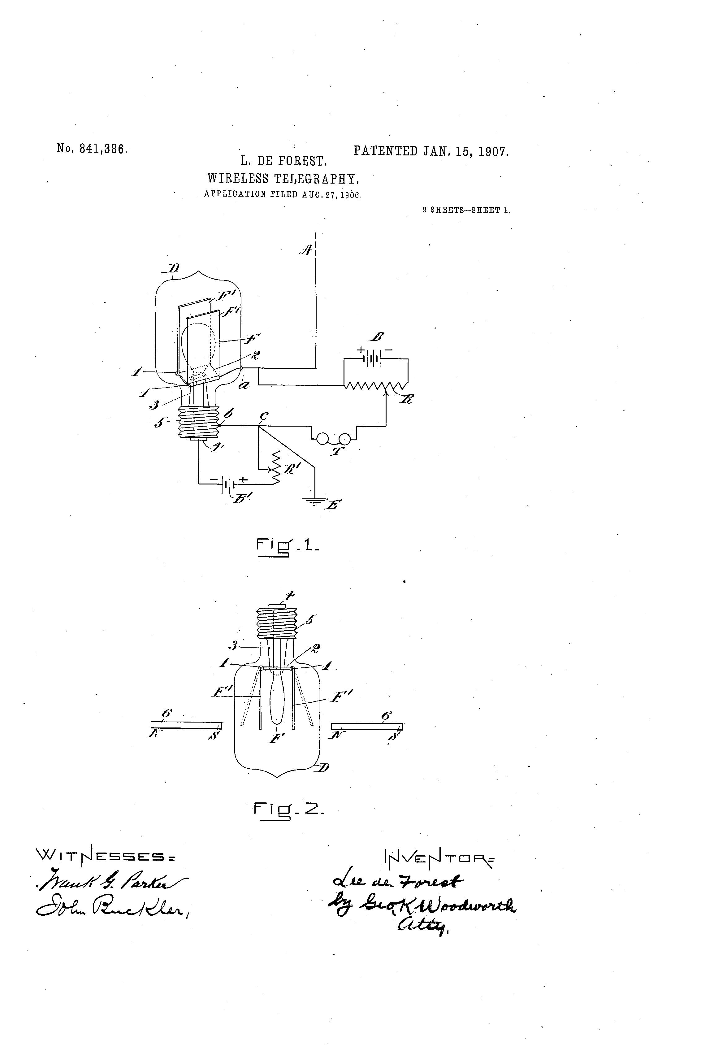 Lee de Forest amerikai feltaláló megkapja a szabadalmi védettséget az Audion csőre, a később triódának nevezett megoldás első változatára. De Forest magát „a rádió atyjának” nevezte, és nem kevés joggal, ugyanis e nélkül a főképp erősítésre használt eszköz, illetve továbbfejlesztett változatai nélkül elképzelhetetlen lett volna a modern rádiózás kialakulása.