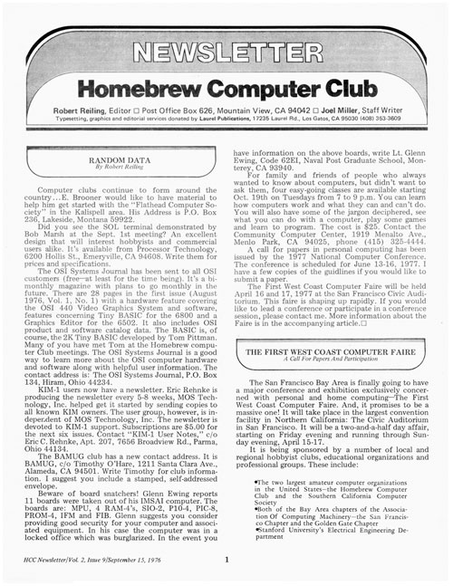 A kaliforniai Menlo Park egyik garázsában először gyűlnek össze a Homebrew Computer Club tagjai, néhány tucat, az elektronikához és a komputerekhez értő fiatal. Rendszeressé váló és egyre több érdeklődőt vonzó gyűléseiken az akkor megjelent Altair 8800 kapcsán a személyi számítógépek technikai és programozási problémáit vitatták meg. A klub tagjai között volt az Apple-alapító Steve Jobs és Steve Wozniak is.