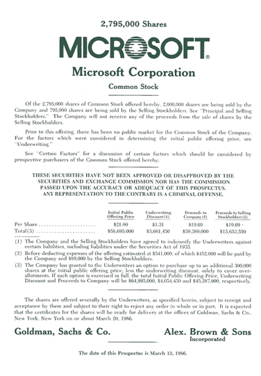 Tíz évvel az alapítása után tőzsdére megy a Microsoft. A rendkívül nagy érdeklődés miatt a tervezettnél több részvényt bocsátanak ki – 21 dolláros névértéken – az első nyilvános kereskedési napra, melynek végén 61 millió dollárral lesz gazdagabb a szoftvervállalat.