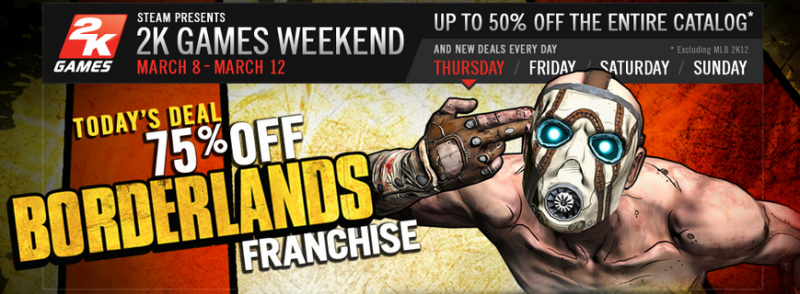 Mindig is szerettük a steames leárazásokat, ha pedig ezt több napon keresztül folyamatosan újabb játékokkal teszik, akkor még jobban szeretjük. Most a 2K játékok közül válogattak a szerkesztők, és kezdésnek a Borderlands és kiegészítői kaptak 75%-kal kisebb árcímkét. Ezt a játékot még a mai nap folyamán este hétig vehetjük meg ilyen kedvezményesen, majd pedig jön a következő "áldozat", egészen vasárnap estig. A 75%-os leárazás mellett viszont majdnem minden egyéb 2K játék is megkapta az 50%-os címkét. Tehát aki mostanság 2K játékra vágyakozott az kísérje figyelemmel a hétvégén a Steamet, hátha a számára is kínálnak valami kedvezőt.