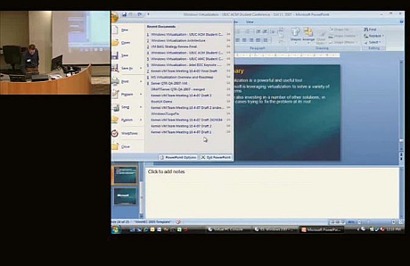 Az elmúlt héten az illinois-i egyetemen neves előadók meghívásával Reflections | Projections 2007 címmel konferenciát tartottak a számítástechnika legújabb eredményeiről. E konferencia rögzített előadásai között találtak rá szorgos bloggerek Eric Traut prezentációjára, melyben elsősorban a Microsoft virtualizációs technológiájáról beszél, de közben szót ejt a Vistát követő, a jelenleg Windows 7-nek hívott operációs rendszer fejlesztésének kérdéseiről is – illetve szerepel az előadásban a Microsoft belső használatára kifejlesztett MinWin, egy speciális, minimális Windows, mely a Windows 7 kernelét használja (a 25 megabájtos program 40 megabájt memóriát használva fut).