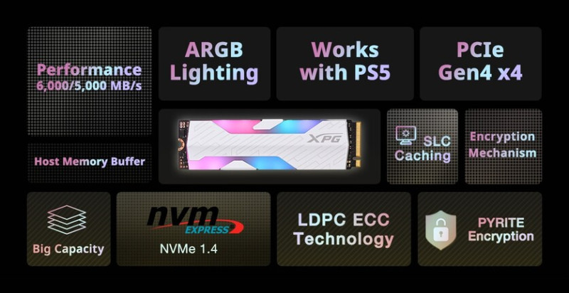 A szekvenciális olvasás/írás sebessége 6000/5000 MB/s-ig kúszhat fel, és az 5 éves garanciával megfejelt konstrukció az SLC gyorsítótárazáson kívül támogatja az LDPC hibajavítást, továbbá a Pyrite titkosítást. Az egyelőre kérdéses árazású megoldás kompatibilis a PlayStation 5-tel, noha az nem tud profitálni a HMB-ből, így némileg lassabb tempóra számíthatunk, mint egy DRAM-os tároló esetében.