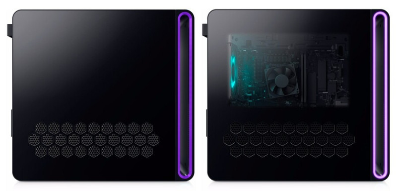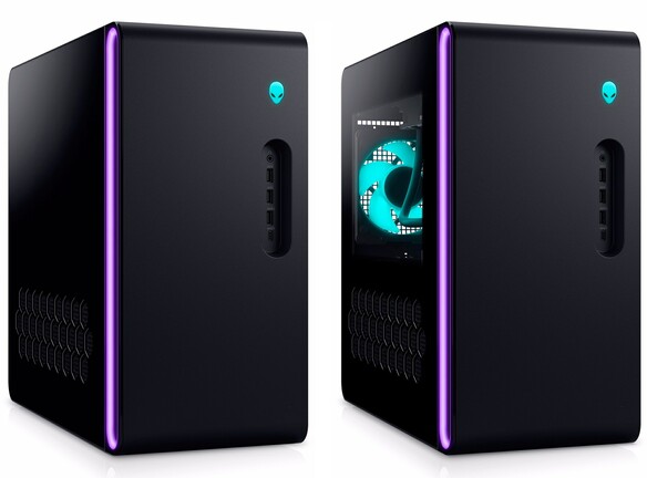 A 418 mm magas, 197 mm széles és 458,4 mm mély, balról panorámás vagy teli oldallapos ház mélyén szolgálatot teljesítő, LGA1700-as alaplap VRM-je 12 fázisos, és két DIMM foglalatába legfeljebb 64 GB-nyi, 5200 MHz-es effektív órajelen ketyegő DDR5 memóriát pakoltathatunk. A CPU integrált GPU-t nélkülöző Intel Core i9-12900F, Core i7-13700F vagy Core i9-13900F lehet, és a központi egység hűtésének feladatát egy 240 mm-es radiátorral rendelkező kompakt AIO-ra bízták. A belső légkeringetésről két 120 mm-es ventilátor gondoskodik, és a hátsó példányról nem spórolták le az AlienFX RGB LED-eket sem, ám a címezhető fények a géplak baljának elején ugyancsak képviseltetik magukat.