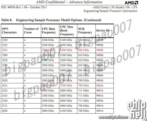 A Trinity APU mérnöki mintáit már szállítja az AMD. A fentebb látható képből kiderül, hogy ezek milyen órajelen érhetők el. A végső termékek paramétereiről persze eltérhetnek, de kiindulási alapnak megfelelnek az adatok.