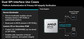Az újítások specifikusan a beágyazott rendszerekre vonatkoznak, ugyanis az EPYC Embedded 9005-ös két SPI-t biztosít, így két darab chipen kívüli ROM támogatható a secure boot képességhez, emellett elérhető az NTB, azaz a Non-Transparent Bridging is, ezáltal két redundáns CPU közötti adatcsere valósítható meg, növelve ezzel a rendszer megbízhatósága. Mindezek mellett az AMD az új termékcsaládra akár hét éves terméktámogatást kínál, illetve egy FPGA bevetésével a DRAM Flush képesség biztosítja az adatok biztonságát áramkimaradás esetén, mivel azok a DRAM-ból automatikusan az NVMe adattárolóra kerülnek.
