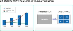Az AMD az Amkor és a Hynix partnereként dolgozik a fentiek gyakorlati megvalósításán, de konkrét termékeket a cég még nem nevezett meg, és azt sem tudni, hogy melyik megvalósítást választja a cég. A célt azonban az AMD megjelölte. Több chip egybe tokozása ugyanis nem csak a DRAM miatt fontos. A CMOS technológia feszegeti a fizikai határokat, így az új gyártástechnológiák egyre költségesebbek, illetve a hibás területek száma node-ról node-ra nő majd, ami összességében a kihozatal csökkenéséhez vezet. Ezzel a gyártóknak nem csak az egyre költségesebb waferekkel kell majd szembenézni, hanem a nagyobb selejtaránnyal is, ami összességében az egy lapkára eső gyártási költség drasztikus emelkedéséhez vezet. Az alacsony áron adható SoC-ok esetében tehát érdemes átgondolni egy olyan elvet, ahol ugyanabban a tokozásban több kisebb lapka van összekötve. Ez a teljesítményen nem változtat, de a termék előállításának költségeit jelentősen csökkentheti.