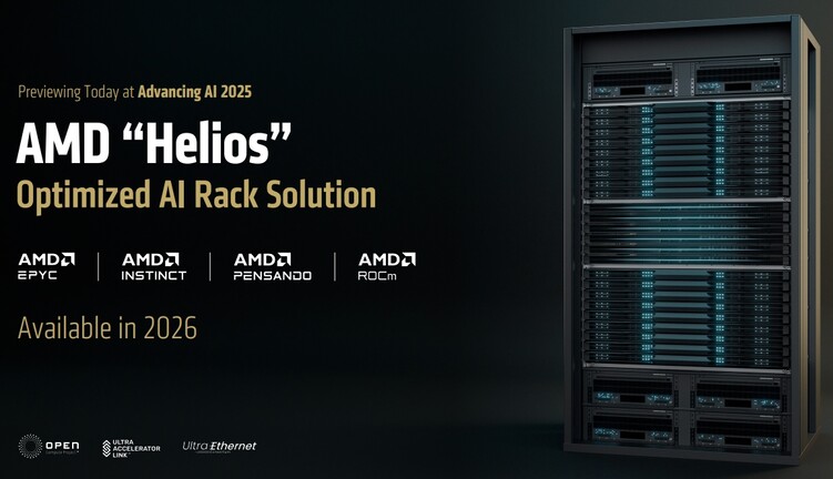 A vállalat az idei évben még nem kínál valódi, úgynevezett rack scale megoldást, mivel a Turin platform, az Instinct MI350-es gyorsítósorozat, illetve a Pollara 400 NIC még nem skálázódik több tucat GPU-ig egy racken belül. A Helios projekt azonban már ténylegesen rack scale alternatíva lesz, és ez a következő év során érkezik meg.