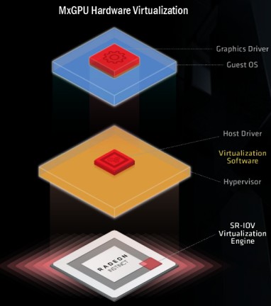 A Radeon Instinct termékcsalád különleges fegyvere az MxGPU technológia lesz. A gépi tanulásnál komoly problémát okoz a hardver megfelelő kihasználása egy adatközponton belül. Az AMD, PCI-SIG SR-IOV (single root I/O virtualization) szabványra épülő, hardveres virtualizációs rendszere ezen segít, ugyanis a vállalat következetes QoS konstrukciója képes több dedukcióra vonatkozó kérelmet kezelni, ami az egész szerver hatékonyságát megnöveli. Erre vonatkozóan már volt már több kísérlet is, de a konkurens virtualizációs eljárások nem annyira kiforrottak, mint az MxGPU, mert a hardverben nincsenek meg a szükséges részegységek, amelyek a működést képesek lennének biztosítani. Erről a Radeon Instinct gyorsítók esetében a HWS motorok gondoskodnak. Az AMD elsődlegesen ezen a területen akar kitűnni, mivel kiemelték, hogy a Radeon Instinct termékcsaládra egységesen vonatkozik a teljes értékű hardveres virtualizáció támogatása, és ezért fizetni sem kell. Utóbbi azért lényeges a cégnek, mert az NVIDIA a virtualizációt lényegesen korlátozottabb formában kínálja, nem kevés extra pénzért, és csak a kijelölt termékekre.