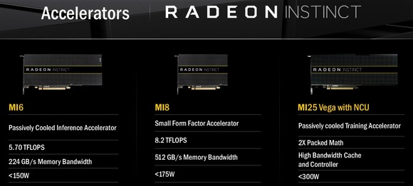 Az AMD bejelentette a Radeon Instinct termékcsaládot, amely gépi tanulásra szánt gyorsítókat fog magába foglalni. Ez jelenleg három érkező terméket jelent, amelyek az MI6, az MI8 és az MI25 jelzést viselik.