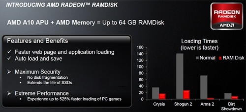 Az AMD még a Trinity APU-val kapcsolatos bemutatón említette, hogy készülnek egy Radeon RAMDisk nevű szoftverrel, melynek előnyeit felvázolták, de a részletekkel kapcsolatban túl sok adatot nem árult el a cég, így csak a kivárásra tudtunk hagyatkozni. Nem is kellett sokáig várni a hivatalos bejelentésre, hiszen az AMD a tegnapi napon hivatalosan is elindította a Radeon RAMDisk weboldalt.