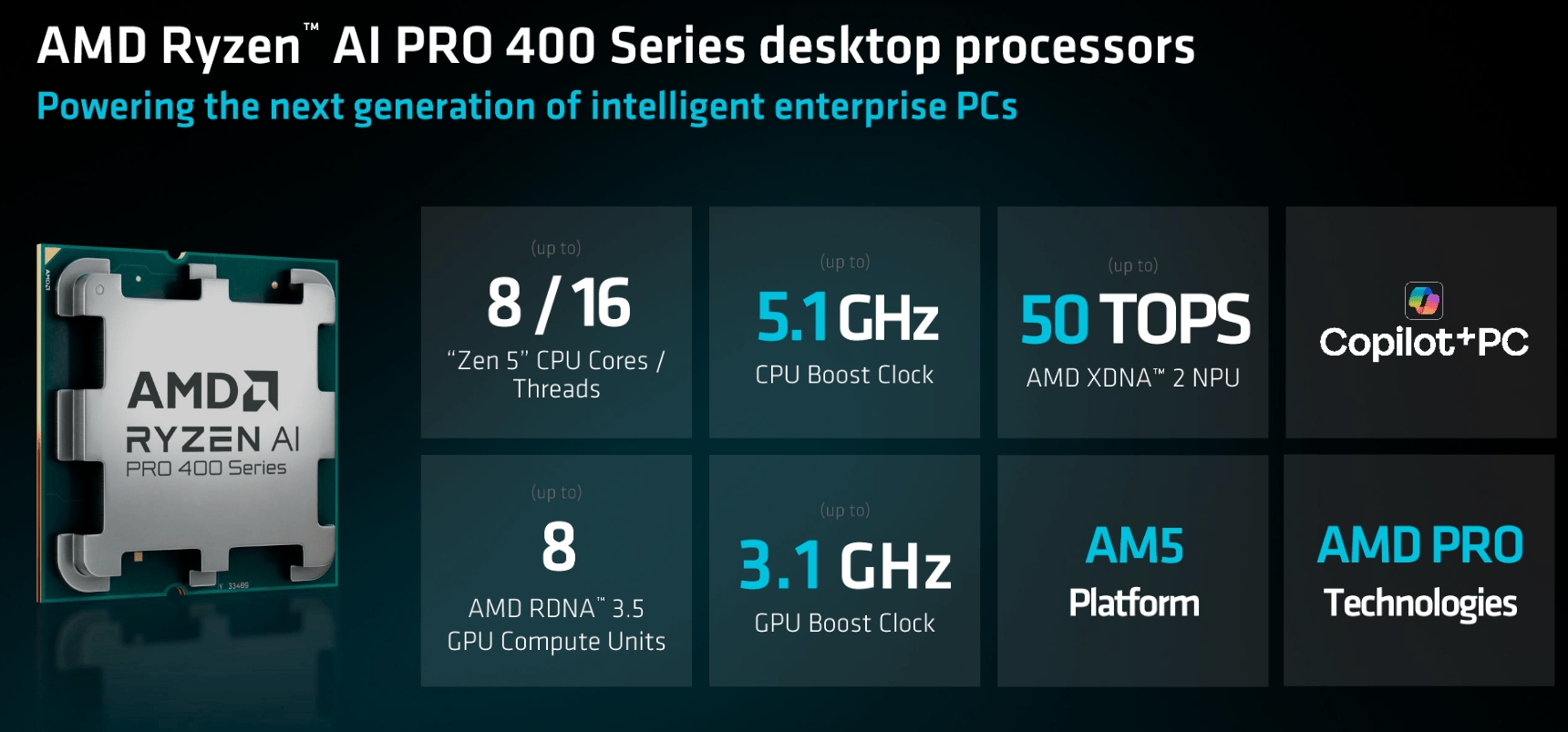 A Socket AM5-ös foglalatba helyezhető normál és PRO verzió mindegyike Copilot+ igényeknek teljesen megfelelő megoldás, és ahogy a táblázatban látható a paraméterek tekintetében a 35 és 65 wattos modellek között sincs eltérés, de ez csalója, ugyanis csupán arról van szó, hogy a 35 wattos verziók is képesek elvileg a legnagyobb órajelekre, de ritkábban fogják ezeket elérni.