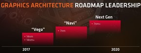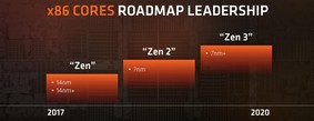 A távolabbi tervek tekintetében az AMD annyira nem volt bőbeszédű, de elmondták, hogy egy olyan fejlesztési stratégiára álltak rá, ahol három mérnökcsoport fejleszti az egyes újabb dizájnokat, így tartani lehet azt a megfeszített tempót, amit a piac megkövetel. A processzorok és a grafikus vezérlők oldaláról a Zen és a Vega lényegében elkészült, így az erőforrásokat már a következő generációra koncentrálja a cég. A CPU-piacon ez a Zen 2 lesz, míg a GPU-knál a Navi. Ezekre a fejlesztésekre épülő lapkák már 7 nm-es node-on érkeznek, méghozzá a GlobalFoundries gyártósorain. Itt meg kell jegyezni, hogy az említett bérgyártó ehhez a technológiához az IBM félvezetőgyártó részlegének felvásárlásával jutott hozzá, tehát ebből a szempontból az AMD nagyon szerencsésnek mondhatja magát, hogy a fenti üzlet megköttetett, és így a partnerük hozzájutott egy igen komoly technológiai alaphoz. Ráadásul a 7 nm-es csíkszélesség nagyon fontos, mert elég sokáig fognak tanyázni rajta a cégek, ahogy az AMD is, ugyanis a Zen 3, illetve a Navi utáni GPU-architektúra is a 7 nm-es node második generációs verzióját fogja használni.