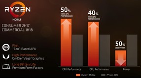 A vállalat a Ryzen Mobile megoldásokhoz egyébként sok reményt fűz, mivel elmondásuk szerint az aktuális 7. generációs APU-khoz képest 50%-kal nagyobb lesz a processzormagok és 40%-kal az IGP teljesítménye úgy, hogy közben a Raven Ridge feleannyit fogyaszt, mint az aktuális Bristol Ridge. Az új APU egyébként már egy újabb verziójú 14 nm-es FinFET node-on fog készülni.