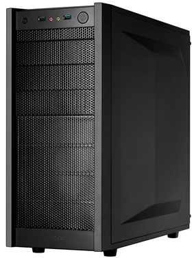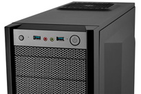 Az Antec sem tétlenkedik, az alig két hete bemutatott Three Hundred Two után most itt a következő darab, mely nemes egyszerűséggel a One nevet viseli. A gyártó elsősorban az alsóbb régiókat szeretné meghódítani a kívül-belül feketére fényezett miditoronnyal, így igyekeztek ideális egyensúlyt találni a költségcsökkentés, a minőség és a funkcionalitás között. A One aránylag kis méretére utal mindössze 4,9 kg-os tömege, ennek ellenére a képek alapján egyáltalán nem tűnik egy gagyi, műanyag fröccsöntött háznak. Megjelenése abszolút egyszerű, előlapja végig sűrűn lyuggatott panelekkel borított, melyek közül a felső három funkcionál 5,25”-es külső meghajtóhelyként. Előlapi kivezetései (2 db USB 3.0 port és az audió aljzatok) és a gombok is abszolút szimmetrikusan helyezkednek el.