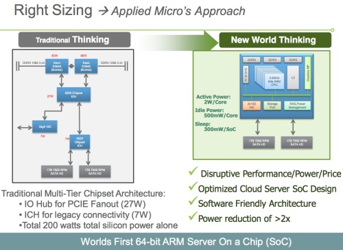 Az ARM alig egy hónappal korábban mutatta be az ARMv8-at, mely a vállalat első 64 bites architektúrája, így ideális lehet a szerverekbe is. Az ARM magokról régóta ismert, hogy nagyon energiahatékonyak, így az új A64-es utasításkészlettel az adatcenterek és a felhős kiszolgálók piacán nagy sikert arathatnak. Az Applied Micro már épít is egy új processzort, mely a keresztségben az X-Gene nevet kapta. Sajnos a termék alapjairól sokat nem lehet tudni, hiszen az ARM még titokban szeretné tartani az ARMv8 részleteit, de az Applied Micro pár dolgot már elárult.