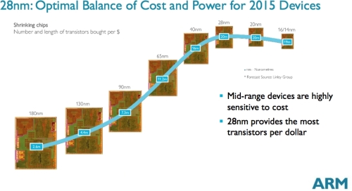 Lényeges szempont, hogy az ARM sokat optimalizált az dizájn működésén, így a Cortex-A17 a Cortex-A15-höz hasonló sebességre képes amellett, hogy az adott lapkán kisebb területet foglal el. Utóbbi nagyon fontos, mivel a brit tervezőcég is figyelembe veszi, hogy az egy tranzisztorra levetített normalizált költségek szempontjából a legtöbb partner a 28 nm-es gyártástechnológiák használatát tartja realitásnak a költségek minimalizálása érdekében.