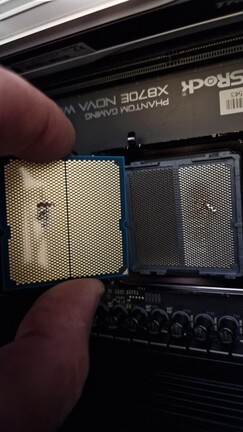 A pontos ok még ismeretlen, de valószínűleg az ASRock az esetet kivizsgálja majd, viszont jellemzően akkor fordulnak elő ilyen helyzetek, ha az alaplapon egy tű picit meghajlik, vagy eleve meg volt hajolva, esetleg valami kis szennyeződés kerül a kontaktfelületre. Utóbbi lehet akár egy nagyobb, papír vagy textilrostból álló porszem is, ami nagyjából pár hét alatt szenesedik el annyira, hogy vezetővé váljon. Az biztos, hogy ránézésre a CPU jól volt behelyezve.