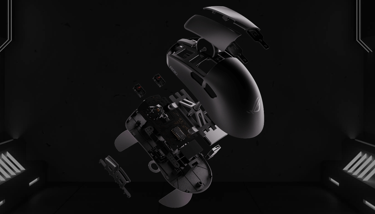 Az 1000 Hz-es mintavételezéssel kommunikáló apparátus burkolatának mélyén 100-tól 36 000 cpi-ig skálázódó, 650 ips-os/50 g-s ROG AimPoint érzékelő (egyedileg módosított PixArt PAW 3395) dolgozik, míg a PBT műanyagból készült főgombok alatt "70 millió kattintásos", mechanikus elven működő ROG 70M kapcsolók telepedtek meg a háromtűs switch-ekkel kompatibilis, gyorscserés foglalatokban. Ez a későbbi potenciális cserét nagyban megkönnyíti, hiszen a manőverhez nincs szükségünk forrasztópákára.