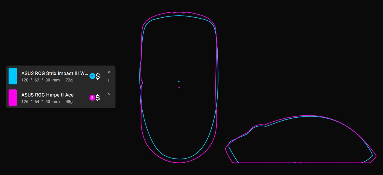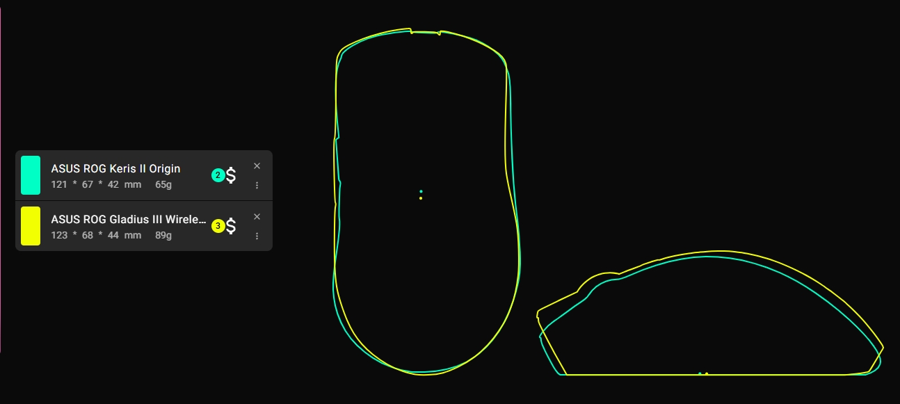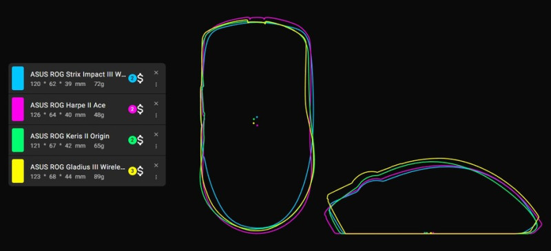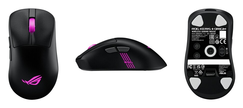 Amennyiben egy kisebb fajta, "ergonomikus" egeret szeretnénk venni, érdemes lehet egy pillantást vetnünk a ROG Keris II Originre, amelynek 121 mm-es hosszához 67 mm-es szélesség párosul, 42 mm-es magasság kíséretében, és akkuja nagyjából 127-192 órás használatot prognosztizál (fények nélkül, 1000 Hz-cel).