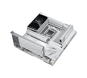A fehér alaplapot egy VGA fogadására tervezték x16-os PCI Express 5.0-s csatolójával, de extraként van még egy teljes szélességű interfész, ez viszont négy darab PCI Express 4.0-s sávval működik. Az M.2 adattárolók maximális száma négy lehet, és kettő PCI Express 5.0-s módban üzemelhet, mindezt pedig kiegészíti még a Wi-Fi 7 és az 5 Gbps-os Ethernet. Ezen a szinten már nincs teljesen eszközmentes szerelhetőség, de azért nagyrészt akadnak könnyítések, tehát ebből a szempontból még mindig baráti megoldásnak számít.