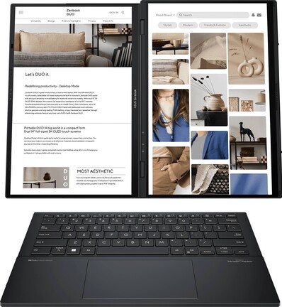 Az igazán különleges, de például multimédiás feladatokhoz, kreatív munkához kiváló Zenbook Duo notebookot is elérték az akciók, így aki ezzel a két kijelzővel rendelkező, hatékony munkavégzést támogató géppel dolgozna karácsonytól, az siessen, mert erre a modellre 20 százalékos kedvezményt ad most az ASUS. Ez azt jelenti, hogy például a Intel® Core™ Ultra 7 Processor 255H processzorral, 16 GB memóriával, 1 TB háttértárral, két darab 14 hüvelykes OLED monitorral szerelt változatért 589 990 forint helyett 479 200 forintot kell fizetnünk, ami gyakorlatilag 120 000 forintos spórolást jelent. Ezzel egyrészt beférünk a félmillió forintos határ alá (sőt, még marad is némi pénz mondjuk egy notebooktáskára), másrészt ez a noteszgép Pantone tanúsítvánnyal rendelkező, gyárilag kalibrált, 120 Hz-es kijelzőkkel érkezik, melyek teljes DCI-P3 lefedettséget is kínálnak.