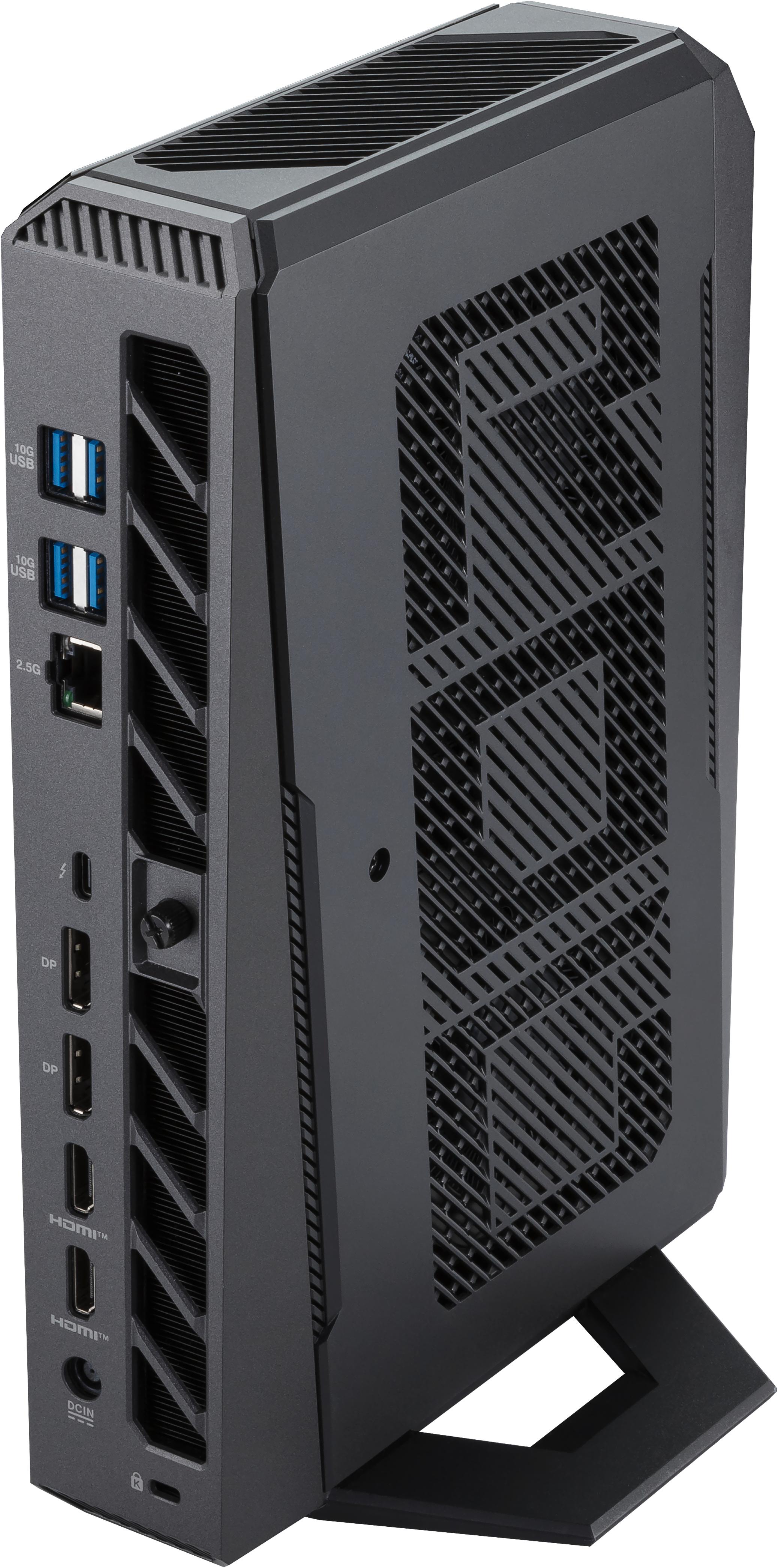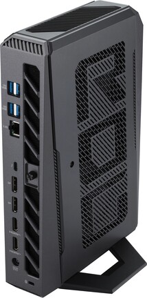 Persze még így is jóval kisebb a klasszikus SFF gépeknél, viszont méretét meghazudtolóan erős, ugyanis Core Ultra 9 275HX dolgozik benne GeForce RTX 5080 laptop GPU-val együttműködve. A memória esetében itt is 96 GB a maximum, a háttértár pedig egy M.2-2280 portba kerülhet, PCIe 5.0 x4 interfésszel.