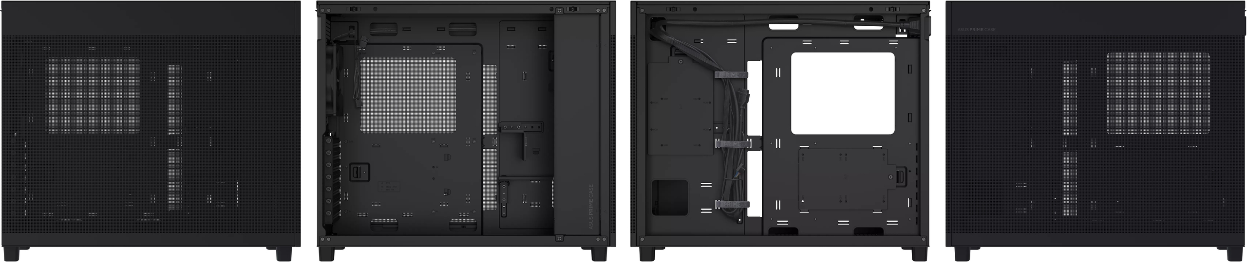 Az ASUS egy relatíve kompakt, Mini-ITX, microATX és ATX formátumú deszkák fogadására felkészített házzal jelentkezett, amelynek minden oldalát javarészt fémhálóval borított elemek határolják – ez alól csak a hátsó szekció a kivétel, de azt is légrések tengere lepi el.