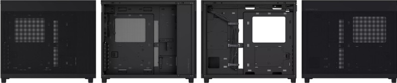 Klasszikus kivitelű háttértárolók tekintetében két 2,5, plusz egy 2,5 vagy 3,5 hüvelykes meghajtóban gondolkodhatunk, míg a legfeljebb 180 mm hosszúságú tápegység a frontban táborozik le, és UL minősítésű, 15 amper közvetítését ígérő kábeltoldat jár hozzá. Az alaplapi tálca mögött 34 mm széles térrész van a vezetékek tépőzáras pántokkal segített elfésüléséhez, és az előlapi kivezetések mezőnyében egy 20 Gbps-os USB 3.2 Gen 2x2 Type-C kaput, két – 5 Gbps-os – USB 3.2 Gen 1 Type-A csatolót, valamint egy 3,5 mm-es kombójacket köszönthetünk.
