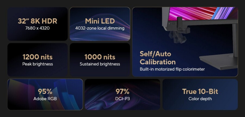 Az ASUS bejelentette, hogy a hónap folyamán elérhetővé válik a ProArt Display 8K PA32KCX nevezetű, professzionális felhasználókat célzó monitora, amelynek 32 hüvelykes, gyárilag kalibrált (kvantumpontos) Mini-LED-es IPS panele 7680 x 4320 pixeles felbontással és 4032 lokális dimming zónával rendelkezik.