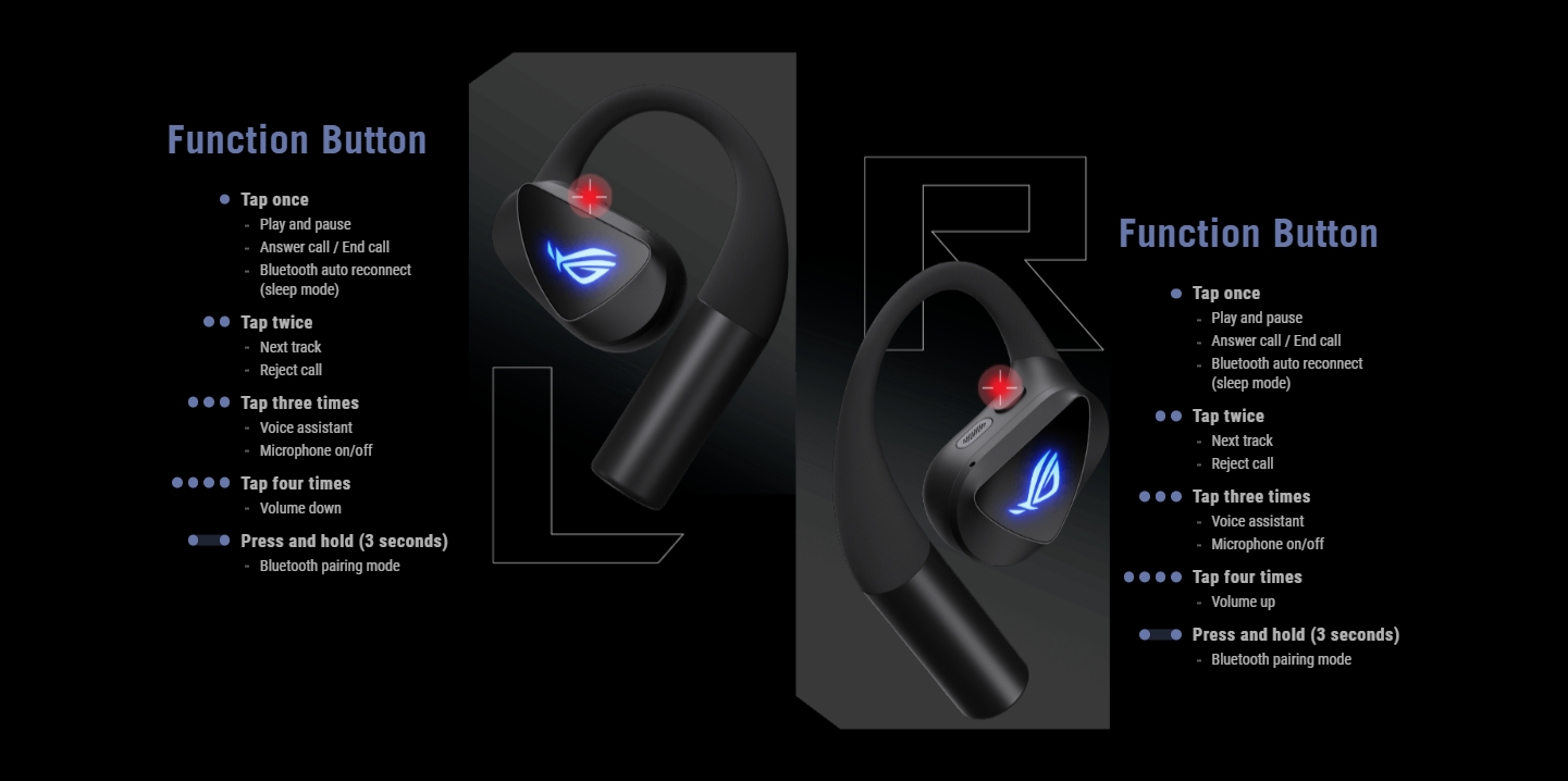 A fröccsenő folyadékokkal szemben IPX5 védettséget élvező, passthrough töltést támogató, USB Type-C-s vevővel csomagolt periféria készülékházainak oldalát Aura RGB-s ROG logók díszítik, és beépített akkumulátorai legfeljebb 16 órára elegendő energiatartalékokkal rendelkeznek, noha a mellékelt töltőtokban további 48 órányi kakaó van. 15 percnyi "gyorstankolás" 3 órás üzemidőt biztosít a 210 eurót kóstáló újdonság leendő gazdáinak.