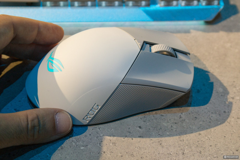 A 75 grammos (tehát 4 grammal karcsúsodott) kurzorkergető formájával vagy fizikai méretével látszólag nem variáltak, de a PBT főgombok, a gyorscserés kapcsolófoglalatok, a bennük alapból megülő ROG switch-ek, a dedikált szervizfuratok, az Aura Sync-es világítás, a korrekt Type-C/Type-A parakábel, illetve a jó minőségű, virgin grade PTFE tappancsok sem változtak, viszont most már a fehér burkolat is felkerül a menüre.