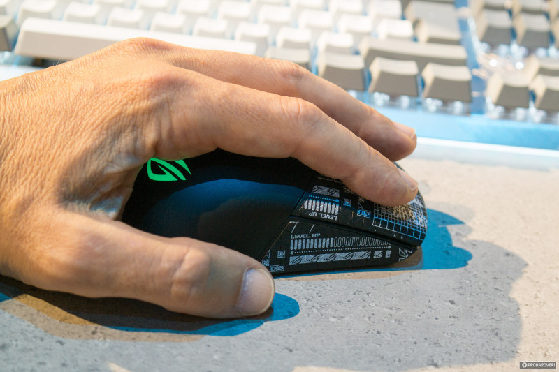 A második újonc, a 79 grammos (ergo 10 grammot fogyott) ROG Gladius III Wireless AimPoint, pontosan ugyanabban a ráncfelvarrásban részesült elődjéhez, a ROG Gladiius III Wirelesshez képest, mint amin az egy bekezdéssel feljebb taglalt márkatársa átesett, szóval a korábbi csáberő talán csak fokozódott.