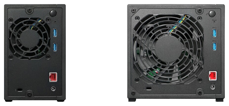A 3,5 hüvelykes SATA meghajtókat fogadó, gyorscserés konstrukciók támogatják a 4K felbontású, 60 képkocka/másodperces sebességgel pörgő anyagok hardveres H.264/AV1 dekódolását, és míg a frontjukon egy USB 3.2 Gen 1 Type-A konnektor állomásozik, addig a hátulsó felükön egy 2,5 gigabites Ethernet táborozott le két USB 3.2 Gen 1 Type-A kapu társaságában. A szekvenciális olvasásban/írásban legfeljebb 209/189 vagy 266/160 MB/s-os tempóra képes apparátusok szerényebbik példánya a Single és JBOD üzemmód mellett a RAID 0/RAID 1 tömböket kezeli, ám nagyobb kapacitású testvére már a RAID 5/RAID 6/RAID 10, valamint RAID 1/5 + Spare Drive konfigurációkkal is barátságot ápol.