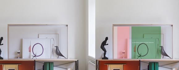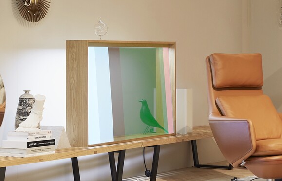 A svájci Vitra nevű bútorgyártó céggel közösen megalkotott, egyelőre még csak prototípus fázisban lévő termék fő funkciója, hogy izgalmasabbá tegye a környezetet, azáltal, hogy passzív tárgyból aktív elemmé változhat bármely pillanatban. Az átlátszó OLED kijelző egy üveges szekrényre hasonlít: egy fakeret foglalja magába a látszólag sima üveglapot. A kialakítása miatt az egység természetes módon illeszkedik napjaink bármely lakberendezési teréhez. Amikor azonban bekapcsolják a készüléket, az üveglap egy élénk OLED kijelzővé változik.