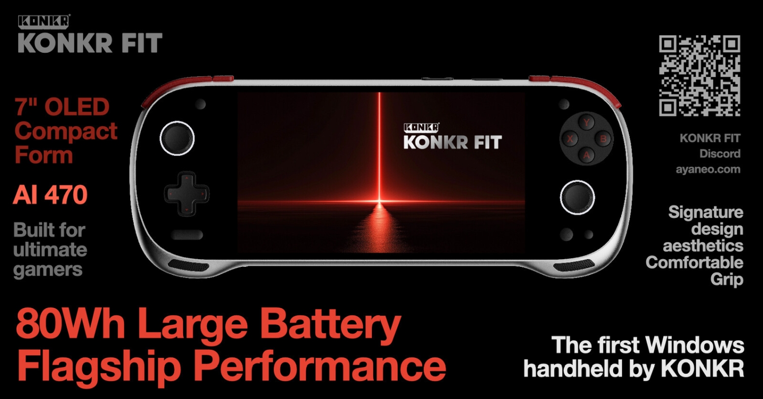 A KONKR FIT-ről még nem érhető el minden adat, de a 7 hüvelykes, 1080p-s OLED kijelzője alatt AMD Ryzen AI 9 HX 470 fog dolgozni. Ez nem a kézikonzolokba szánt Ryzen Z-sorozat része, hanem inkább a notebookokba való, de jelen esetben ez előny, mert ezeket a fejlesztéseket az AMD olcsóbban adja a gyártópartnerek számára.