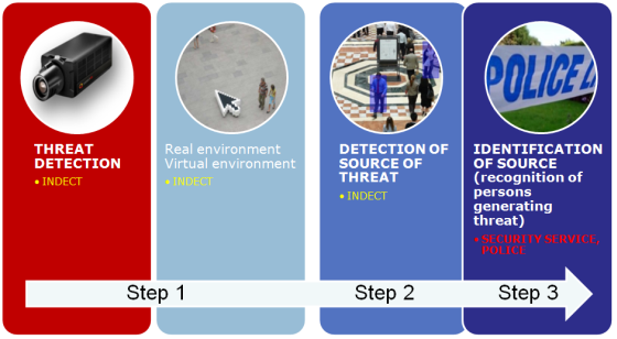 A kultikus film, a Különvélemény (Minority Report) technológiájának egy egyelőre primitív változatát felmutató INDECT egy olyan automatizált rendszert takar, ami önállóan, emberi beavatkozás nélkül felismeri és elemzi a virtuális (az internet bármilyen fórumán) vagy a való világban (megfigyelő kamerák által rögzített képeken) zajló eseményeket, majd azonosítja a hamarosan bekövetkező vagy már folyamatban lévő bűncselekményeket, ezek után pedig a fejlett arc- és helyfelismerő rendszernek köszönhetően elküldi a megfelelő adatokat a helyi hatóságnak. A fejlesztők szerint ez a jövő, a személyes adatvédelem mellett kiállók szerint viszont ez csak egy újabb eszköz arra, hogy az EU segítségével a hatóságok a privát szféránkban vájkáljanak, a híressé/hírhedtté vált Anonymous mozgalom szószólói pedig úgy vélik, ez az abszolút tökéletes módszer arra, hogy az embereket megfosszák alapvető szabadságjogaiktól.