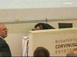 Ha már egyszer felállt, elmondta tört angolsággal, erős magyar akcentussal (félreértés ne essék! ezek egyike sem baj különben!), amit akart, s azt látja, hogy megfagy a levegő a teremben, akkor legalább találja már el öt méterről azt a fazont, akit akkora szörnyetegnek tart! De nem, a revolucionér úgy dobja a tojásokat, mint a megszeppent szűzlyány a bucsuban a labdát, talán még szurkol is, hogy el ne találja.… Aztán az „áldozat” – nem épp lovagi erény – bemenekül a pult alá, az előadóban vészes csönd, ő meg szépen kisorol a helyéről.… Édes istenem, hát milyen forradalmár az ilyen? Ha már egyszer nem teperik le, nem zúdul rá a hallgatóság, akkor tessék, itt a lehetőség, hogy tovább nyomja, hogy tovább beszéljen, figyelnek a kamerák, mindez bekerül a híradókba; tessék felugrani a padra, pocskondiázni a gyáva áldozatot, világgá kürtölni a hitvallást és a többi. De nem. Mi történik? A csávó kislisszol, mint a moziban, amikor vécére kell menni. Hát…