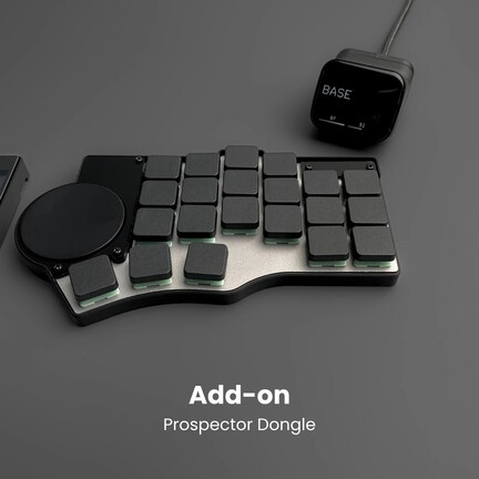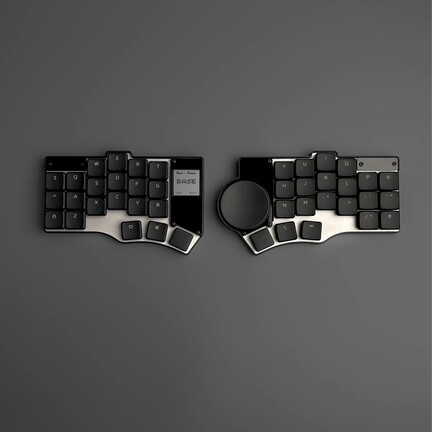 A 42 gombos, ZMK firmware-ének hála komoly programozhatóságot – no meg korrekt üzemidőt – ígérő periféria a Cantor/Piantor kiosztást használja, amely igazából egy 3x6-os, columnar staggered kialakítású Corne, csak agresszívebb kisujj staggerrel (tehát a térfelek két külső gomboszlopa jóval mélyebben helyezkedik el). A célgépre Bluetooth 5-tel köthető, Seeed Studio XIAO nRF52840 Plus kontrollerekkel érkező klaviatúra gyorscserés foglalataiba Choc V1, illetve V2 kapcsolók mehetnek, és opcionálisan tízfajta, lineáris, taktilis vagy kattogós switch-ből választhatunk kedvünkre valót.