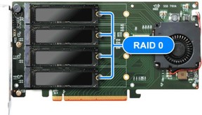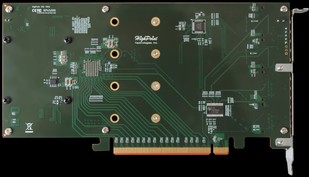 A HighPoint új, egyslotos, 50 mm-es ventilátorral megtámogatott, blower típusú, alumíniumházas hűtést alkalmazó SSD7102-es NVMe RAID vezérlőkártyája négy M.2-es eszköznek biztosít szállást, egészen a teljes méretű 22x110 mm-es sztenderdig. Megkerülve a processzorból fakadó némely alaplap problémáit egyszerre több, PCI Express sávokat foglaló eszköz korrekt lekezelésével, a kontroller egy x16-os PCI Express aljzatot elfoglalva a sávszélességet gondosan x4-es dedikált részekre osztja a rákötött NVMe-s apparátusok között, miközben a működéshez maximálisan 8 wattot igényel.