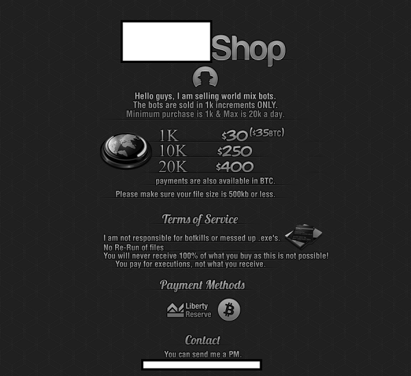 A minimális rendelés 1000 gép, ez 30 dollárba kerül, és a könnyebbség (nomeg a nehezebb azonosítás) miatt természetesen Bitcoinnal is lehet fizetni. Ha ennél több gépre lenne szükségünk, 10 ezer botért 250 dollárt, 20 ezerért pedig 400 dollárt kell fizetünk.