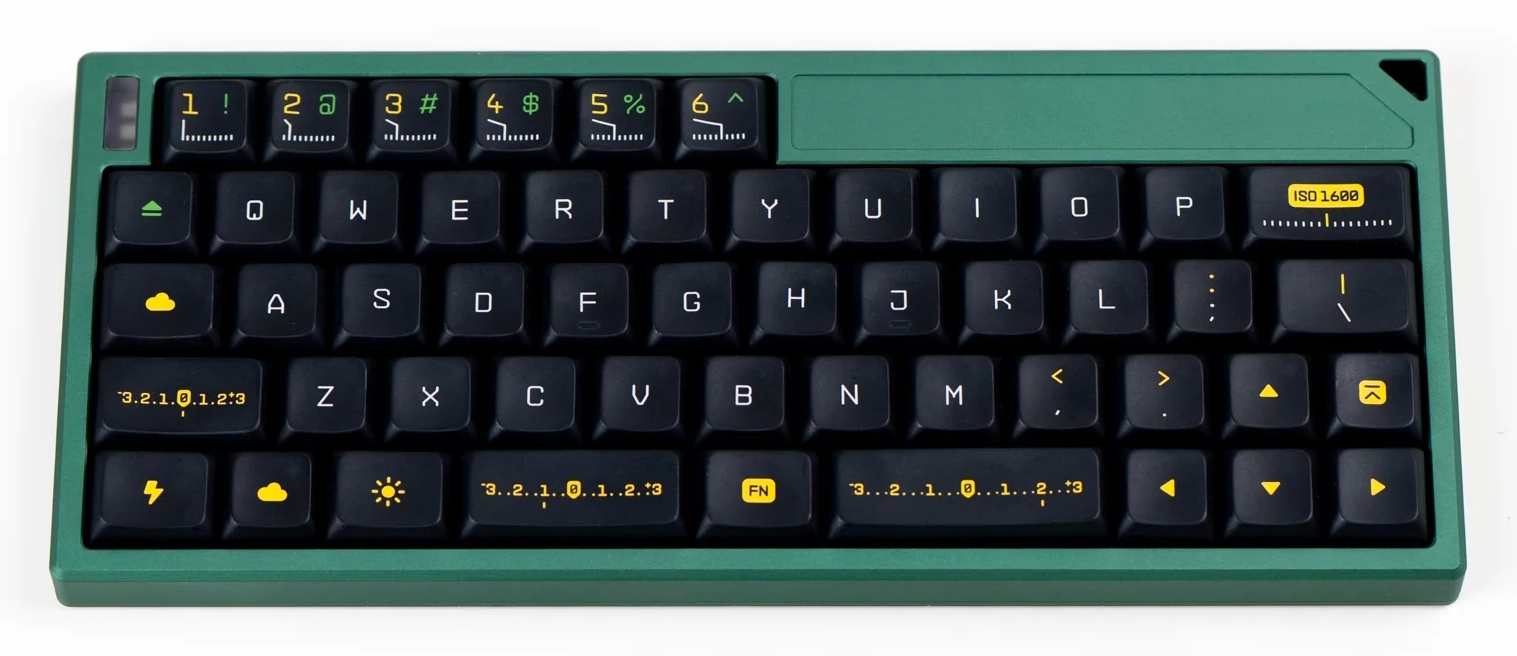 Az alacsony profilú csöppség szexepilje, hogy teljes, fixen 0 fokos dőlésszögű alumíniumházzal érkezik, ráadásul nem lebegőgombos kivitelű, plusz a sima, 6,25u széles mellett támogatja a 2,25/1,25/2,75u-s osztott spacebart (véleményünk szerint ez hatványozottan fontos az ennyire kompakt eszközök szegmensében), és az alfaklasztere felett hat további (alapértelmezésben szám)gomb sorakozik a sztenderdhez képest. Ezt a szaknyelv V4N4G0N elrendezésnek hívja, ami a MiniVan kiosztás módosított verzióján, a JetVanon alapszik.