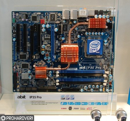 Az Abit szintén két Bearlake-re épülő újdonságot állított ki standján; az IP35 és IP35 Pro az Asus P5K3-M-hez hasonlóan a P35 + ICH9R chipset tudását kamatoztatja, a Pro változat azonban szemmel láthatóan alkalmasabb alapot jelenthet tuningra, köszönhetően a komolyabb hűtésnek, illetve a tágabb tűréshatárral rendelkező feszültségszabályozó áramkörnek. Ezek az alaplapok már két PCI Express x16 bővítőkártyát is fogadhatnak, egyelőre azonban vélhetőleg csak az AMD ATI Radeon kártyáit lehet majd szóra bírni páros üzemmódban az új chipset közreműködésével.