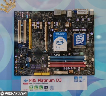 Szintén a P35 típusú északi hídra alapoz az MSI P35 Platinum D3 típusa, mely az Abit megoldásaihoz hasonlóan teljes ATX méretű alaplap. Az MSI újdonsága szintén két PCI Express x16 kártyahellyel szolgál, ezenkívül erről az alaplapról is hiányoznak (akárcsak az Asusnál és az Abitnál) az őskövületnek tekinthető soros és párhuzamos portok.