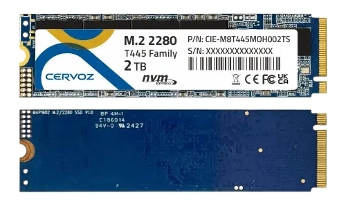 A Cervoz nemrégiben útjára indította a T445 névre keresztelt, M.2 2280-as formátumú SSD-jét, ami egyoldalas kialakítást kapott, és 256 GB-os, 512 GB-os, 1 TB-os, illetve 2 TB-os változatokban készül.