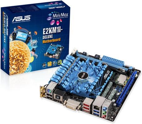 A multimédiás vonalon is akadtak ígéretes bejelentések, ilyen például az E2KM1-I Deluxe Mini-ITX alaplap, amit elsősorrban HTPC-kbe szán a gyártó. Ehhez jó választás volt az alaplapra integrált AMD E2-2000 APU, amely vélhetően ezt a feladatkört nem csak jól, de hatékonyan is képes ellátni. Az adattárolók csatlakoztatására 6 x SATA 6 Gbps-os aljzat sorakozik, ezek közül az egyik eSATA. A memóriamodulokat két darab normál DDR3 DIMM foglalat várja, bővítőkártya pedig egy x16-os PCI-Express 2.0-s résbe taszítható, így az integrált AMD Radeon HD 7340-nél komolyabb videokártyával is kiegészíthetjük a konfigurációt, bár az IGP sebességét figyelembe véve kétséges, hogy érdemes-e. A Mini-ITX szabványú alaplapon mini PCI Express foglalat is látható, ebben alapesetben egy IEEE 802.11b/g/n kompatibilis Wi-Fi kártya lakik. A hátlapi I/O panelen minden szükséges csatlakozó megtalálható: 6 x USB port, a már említett eSATA, DVI, HDMI, analóg (3 x 3,5 mm jack) és digitális (optikai S/PDIF) audioaljzatok, PS/2, Gigabit Ethernet (RJ45) és a Wi-Fi antennák kivezetései. Az APU tetejére biggyesztett hűtőbordát ventilátorral is megtámogatták, remélhetőleg ennek zajszintje alapesetben kellően alacsony lesz.