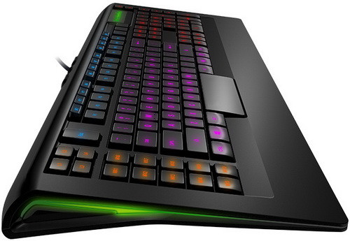 A háttérvilágítás 8 fényerősségi szinten a szivárvány minden színében képes pompázni, ez azonban nem csak optikai tuningelem. A SteelSeries ActiveZone 5 különböző zónára osztja fel a billentyűzetet, ezek színe függetlenül változtatható, ez a 4 réteggel kombinálva komoly segítséget jelenthet a megfelelő parancsok és makrók előcsalogatásában. A fedélzeten kétportos USB HUB is található egyéb eszközök kényelmes csatlakoztatása végett. A jobb oldalon egy sor multimédiás gombról sem feledkeztek meg, így médialejátszók kontrollálása és a hangerő szabályozása csak egy mozdulat. Érdemes még megemlíteni a plusz két iránygombot, a megnövelt space-t, valamint a billentyűzetről közvetlenül blokkolható Windows gombokat.