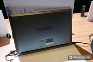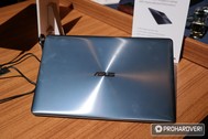 Szintén megtekinthető és megforgatható volt a a Computex óta nem ismeretlen ASUS Zenbook 3 család legújabb, itt bemutatott Deluxe változatát. Fő változás, hogy a képátló 12,5 hüvelykről 14 hüvelykre nőtt (Full HD felbontás mellett), de mindezt sikerült 13 hüvelykes notebookok méretének megfelelő kasztniba beszerelni, ami nyilván a keskenyebb keretnek is köszönhető.