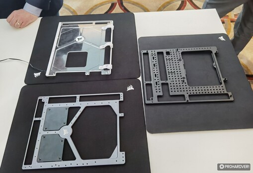 Ez mondjuk nem egy nagyon extra megoldás, de az már szokatlanabb, hogy az alaplapi tálca nemcsak kivehető, de a Corsair többféle változatot is szeretne árulni belőle: a standard megoldás mellett egy plexiüvegből készült, oldalsó RGB megvilágítást kínáló, egy vaskosabb, alumíniumból kimart, de acél betétekkel mágneses rögzítésű kontrollerekkel is kompatibilissé tett, illetve egy, az átlagosnál sokkal több lyukat tartalmazó verziót is kiállítottak. Az utóbbihoz egy klipszkészlet is tartozik, ami lehetővé teszi a hátsó kábelmenedzsment kulturáltabb kialakítását. Valamennyi tálcára igaz, hogy a hátsó csatlakozós alaplapokkal is kompatibilisek. A Frame 4000D hamarosan elérhetővé válik, ajánlott – induló – ára pedig itt 95 dollár lesz.