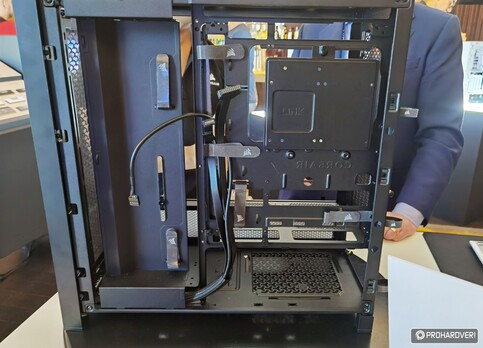Hely egyébként van bőven, mindkét pozícióban akár 360 mm-es radiátorok is elférnek. Cserélhető a tápegységet tartalmazó kamra burkolata, a bővítőkártyákat tartó elem pedig egy mozdulattal függőleges és vízszintes állásba is áttehető.
