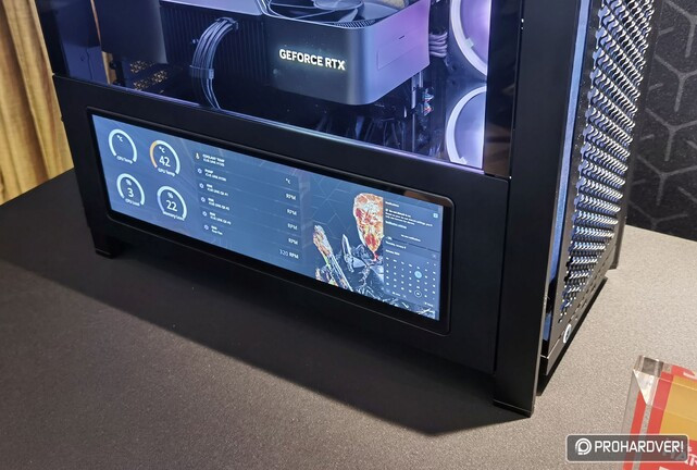 A 4000D mellett a másik fő újdonság a 249 dolláros Xeneon Edge kijelző, amely egy igen széles képarányú, 2560x720 pixeles, 14,5”-es képernyő, érintésérzékeny felülettel, Type-C és HDMI bemenettel. Hátoldalára mágneses talp pattintható, így felállítható a monitor alatt, de a Frame 4000D-be is integrálható a megfelelő oldalpanellel, vagy felrakható bármilyen, tetszőleges házra, ha kicsit barkácsolunk. Ezt egyébként az is segíti, hogy a készletben olyan USB kábel is található lesz, amivel rögtön az alaplapi USB 3.2 interfészre csatlakozhatunk, tehát még csak ki sem kell vezetnünk a kábelezést a gépházon kívülre.